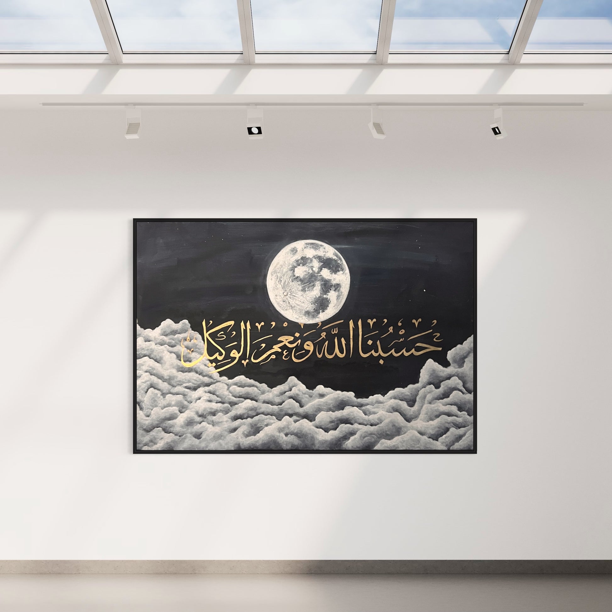 Arabic calligraphy delicately rendered in gold: “Hasbunallahu wa Ni’mal Wakeel” “Allah alone is Sufficient for us, and He is the Best Disposer of affairs.” (3:173).